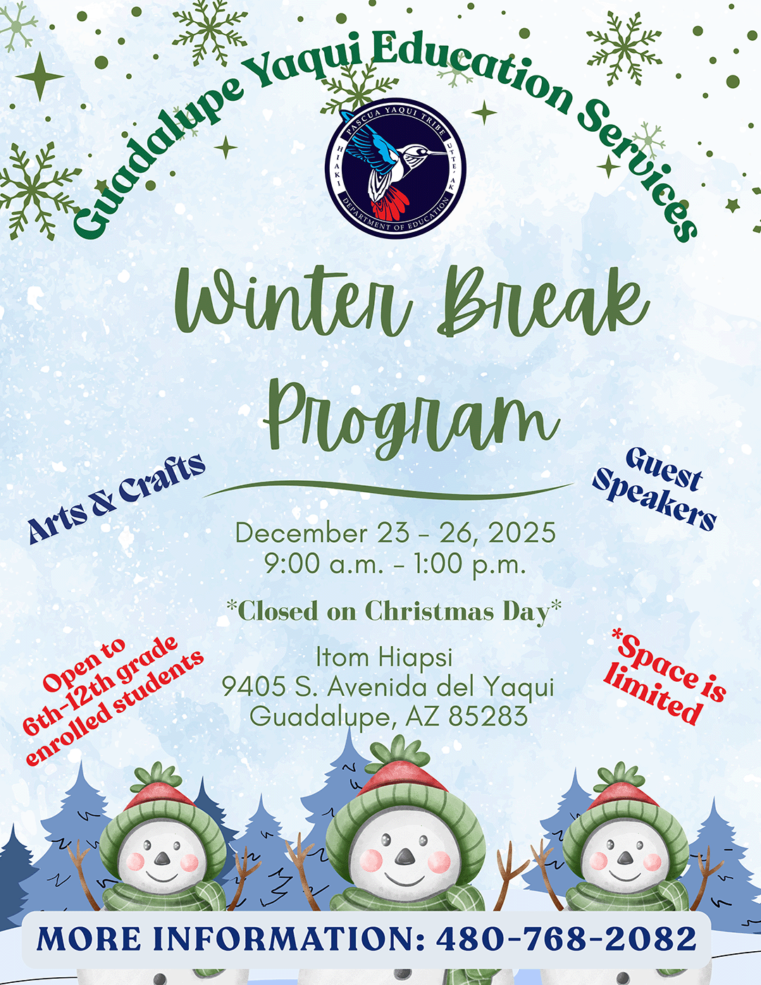 Develop a path for lifelong learning through Educational Services while promoting Yaqui Heritage and Tribal Self-Sufficiency for members of the Pascua Yaqui Tribe.